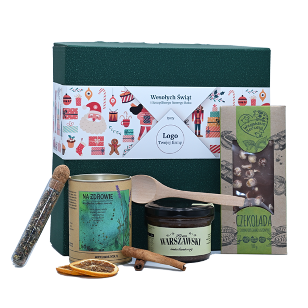 - Całość w pudełku ozdobnym z wypełnieniem i dekoracją